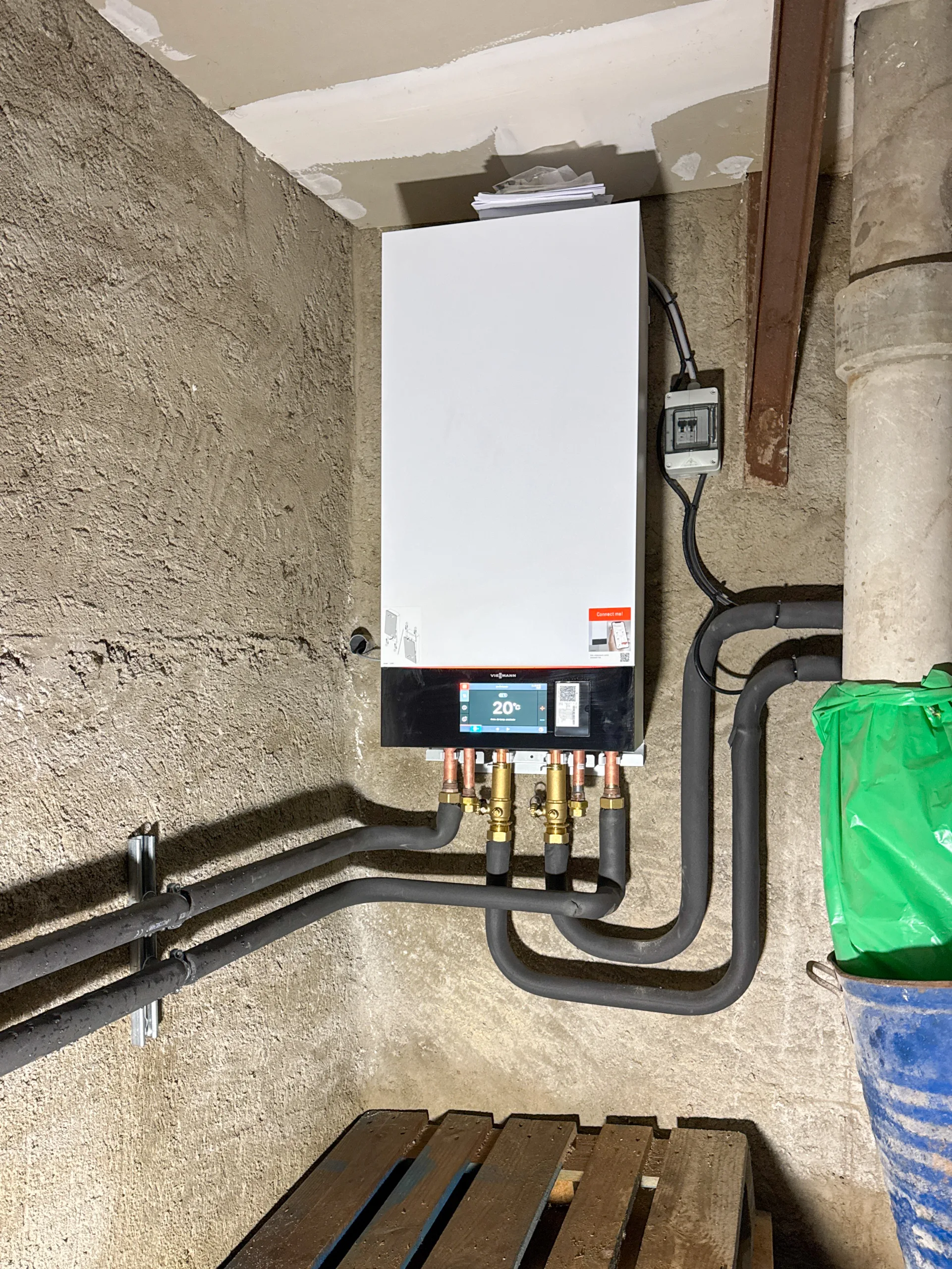 Chaque chantier est unique. Pour cette maison de 125 m2, nous avons installé l’unité intérieure en sous-sol sur dalle existante, optimisant ainsi l’espace tout en limitant les nuisances sonores. L’unité extérieure a été positionnée pour respecter l’esthétique du jardin et les contraintes acoustiques (seulement 35 dB (A) à 4 mètres).